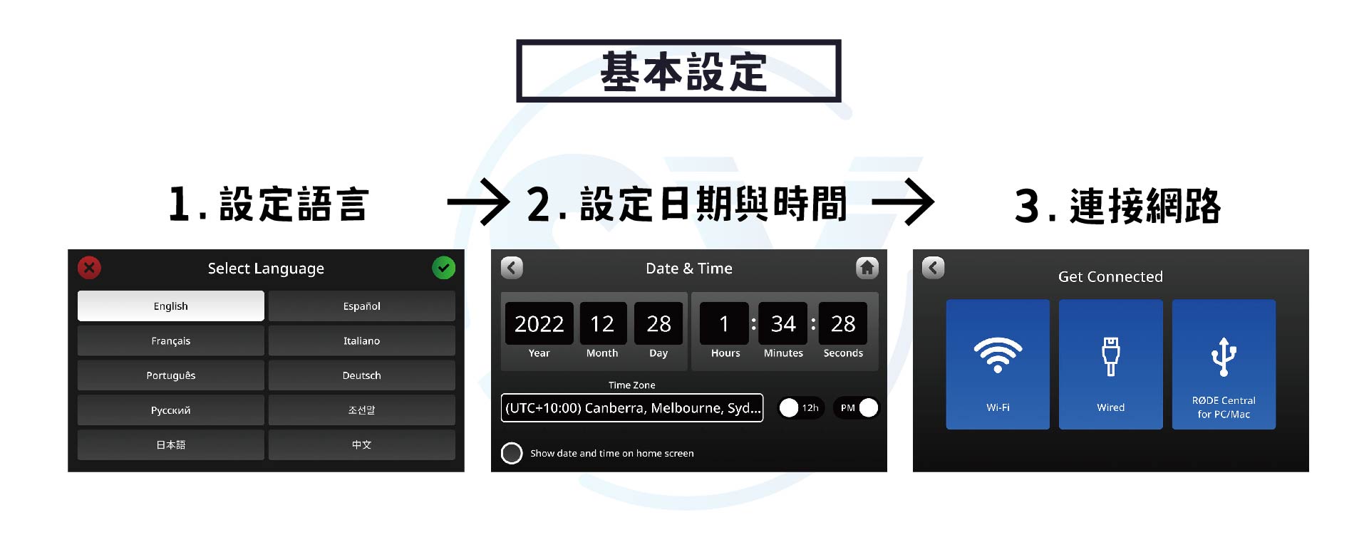 在首次開機時,會有簡單的初始設定,只要跟著指示走很輕鬆就能完成設定!