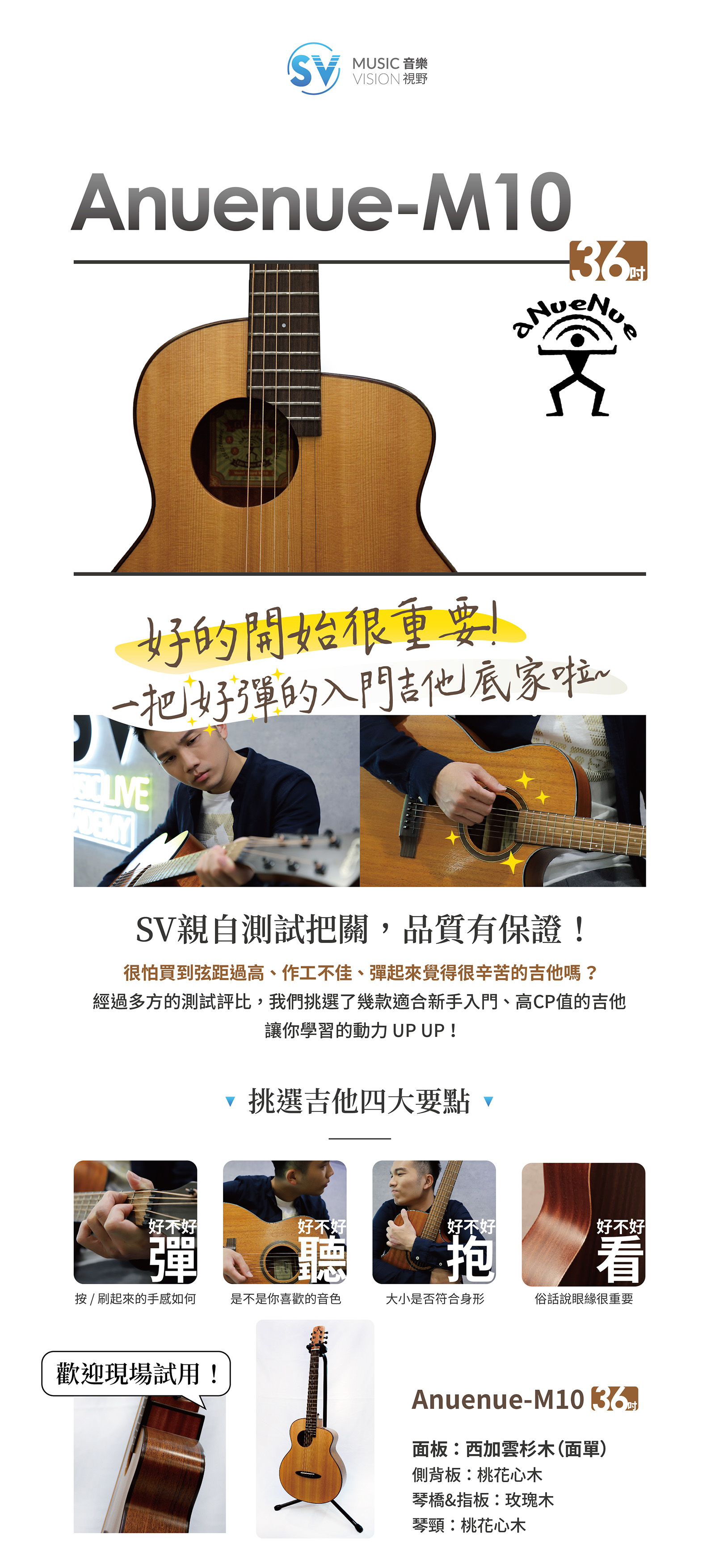 為36吋面單鋼弦吉他,鳥吉他桶身搭配特殊立木結構,讓面板更穩定,提升六弦的低音。