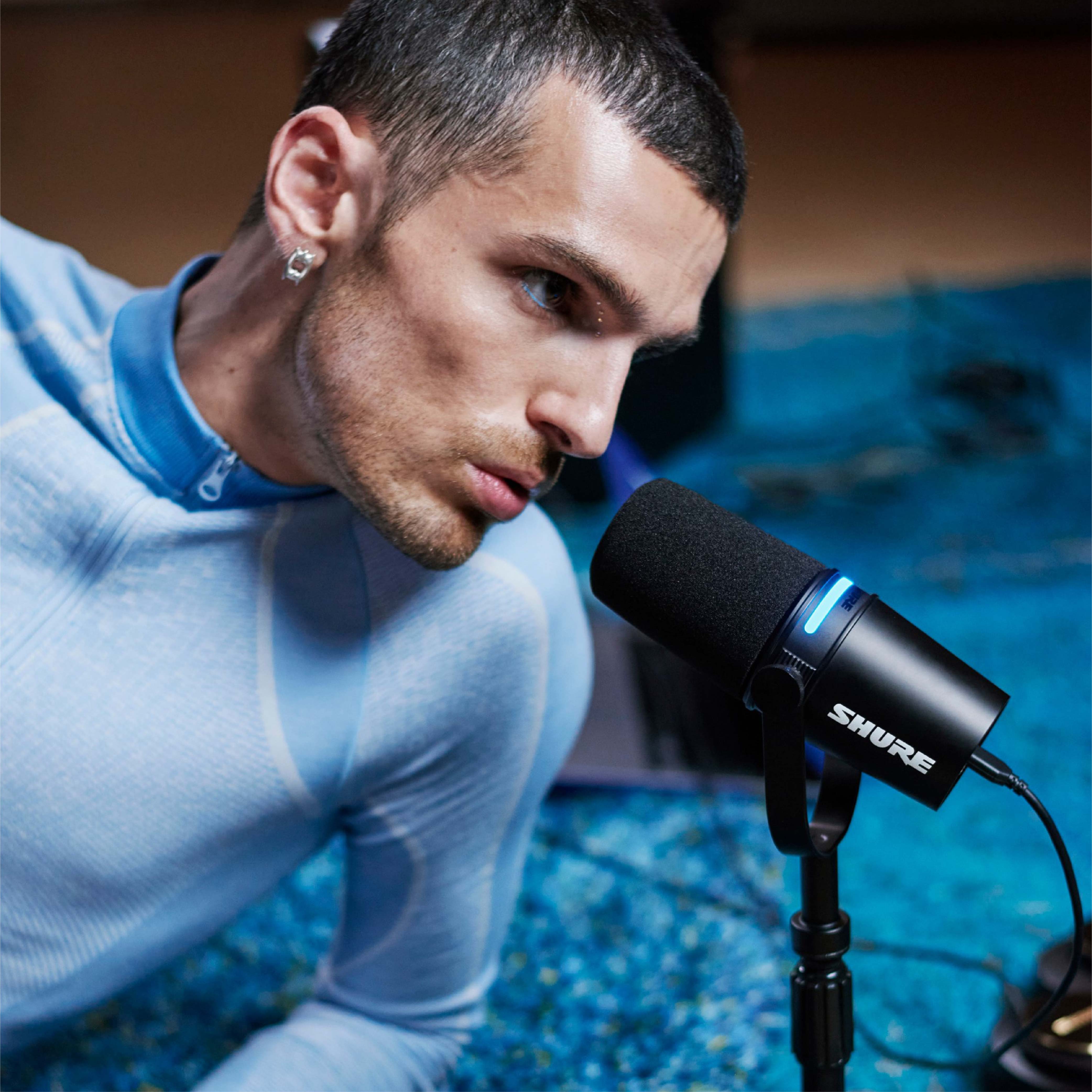全新的Shure MV7+麥克風,可自定義的全彩 LED 觸摸面板帶計量功能