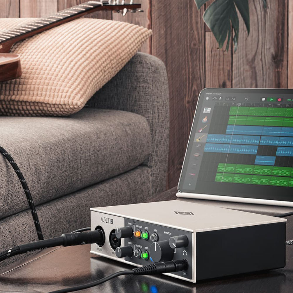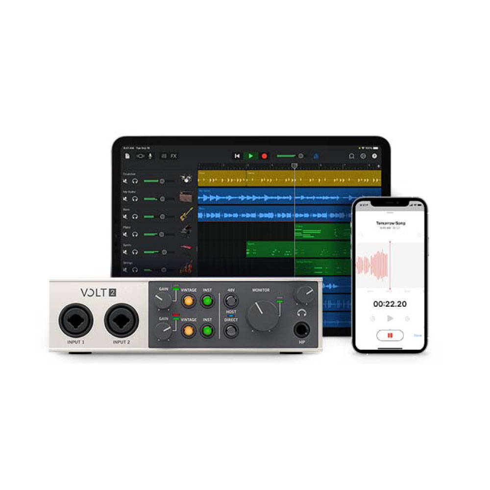 Universal Audio Volt 2 主打音樂人、吉他手、內容創作者以及 Podcaster 等簡單需求的創作者一個穩定且高品質的錄音載體。