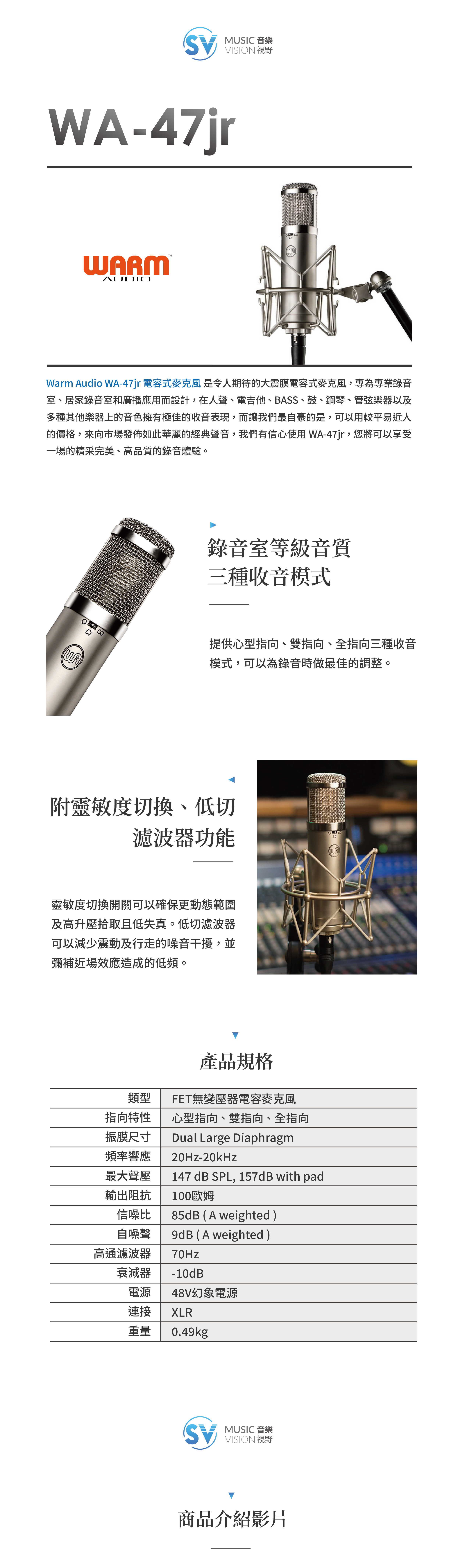 ※需搭配幻象電源或錄音介面,不可單獨使用